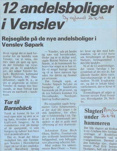 12 andelsboliger i Venslev. Artikel fra By og Land 26 okt. 1988.