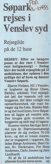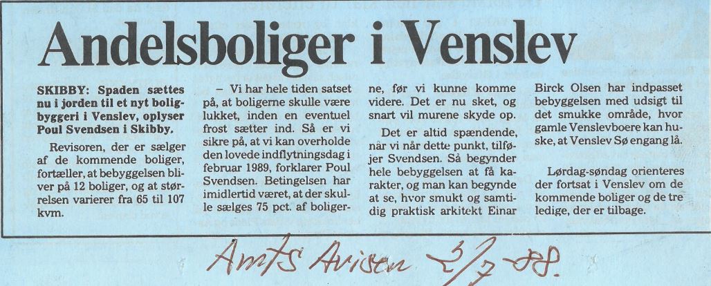 Andelsboliger i Venslev. Artikel fra Frederiksborg Amts Avis 2 juli 1988.